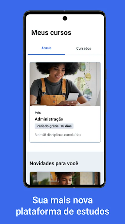 Anhanguera brings you a new teaching experience on a 100% online platform with the necessary flexibility to develop. You can manage your own time and study however you want, even on the way home or to work. After all, the course adapts to you.