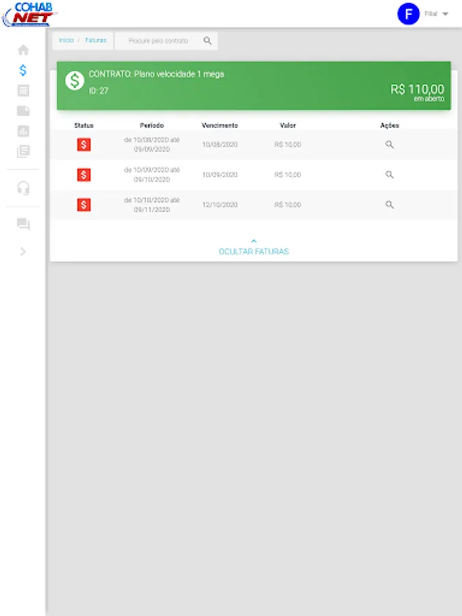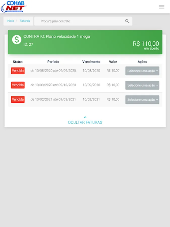 If you want to better understand the details of your expenses, all your paid and open invoices will be on a single screen available whenever you need it, in a digital, practical and fast way.