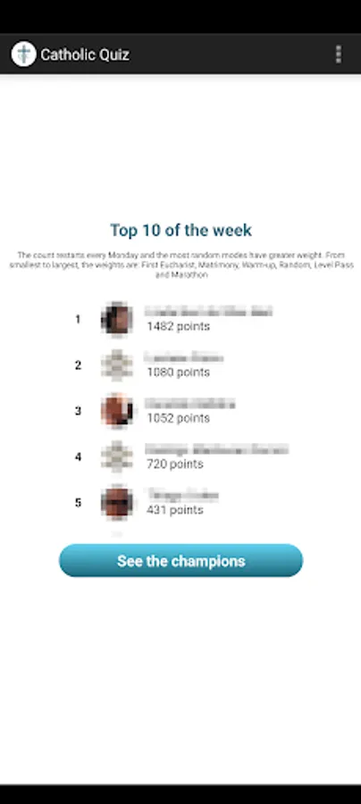 In the Catholic Quiz you have fun and learn with thousands of questions about the Catholic Church and Christianity. It offers questions on various subjects / categories: Jesus / Gospels, Holy Mass, Commandments, Sacraments, Bible (Old Testament and New Testament), Apostles, Miscellaneous / Church History, Deadly Sins, Popes, Prayers and Saints.
