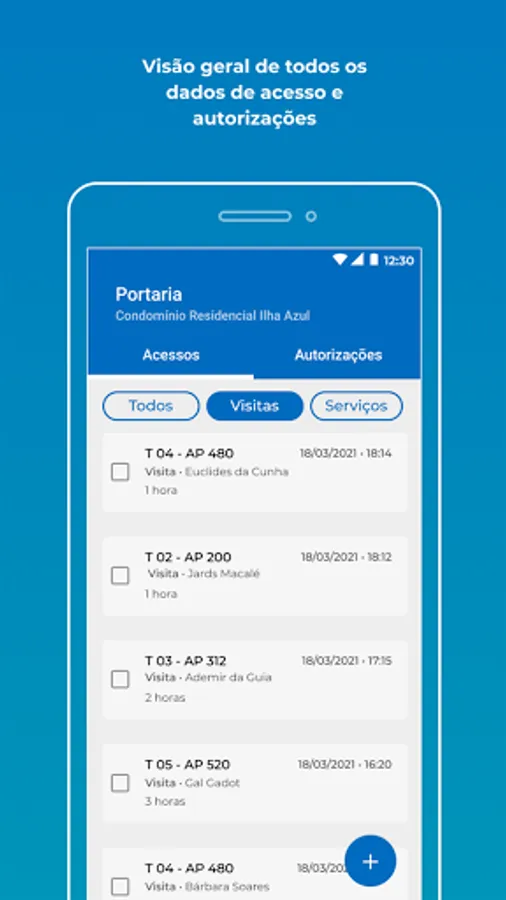 - Check authorizations, register access and check out referring to a visit or service (delivery, maintenance, change and others);