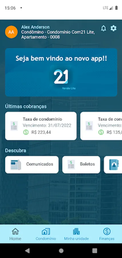 Then download and activate your access account. This activation can be carried out in two ways: through the invitation sent by email by your condominium administration or through the application itself (just click on the “Register” option, using the identification number described in your slip)