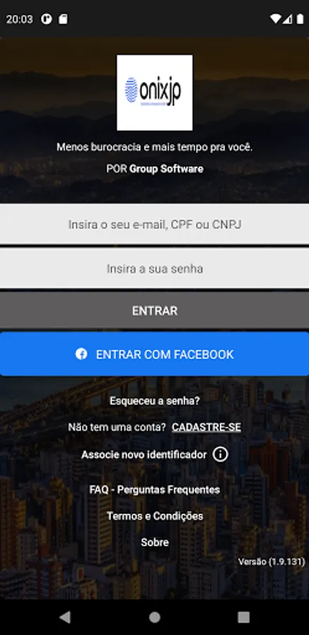 Then download and activate your login account. This activation can be done in two ways: through the invitation sent by email by your condominium administration or through the application itself (just click on the “Register” option, using the identifier number described in your bank slip).