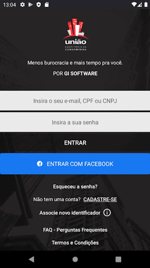 Then download and activate your access account. This activation can be carried out in two ways: through the invitation sent by e-mail by your condominium administration or through the application itself (just click on the option “Register”, using the identifier number described in your payment slip).