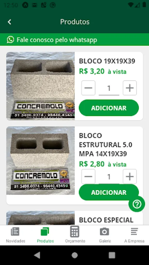 So just enter the app, go to the products tab, select the type of block you need and the amount you will need. After doing this, go to the session where the budget is and finalize the order. Then you just need to fill in some basic information, such as name, cpf and the delivery address for the freight calculation to be carried out automatically. After that just send your order and that's it! We will receive in our system and confirm with you the order.