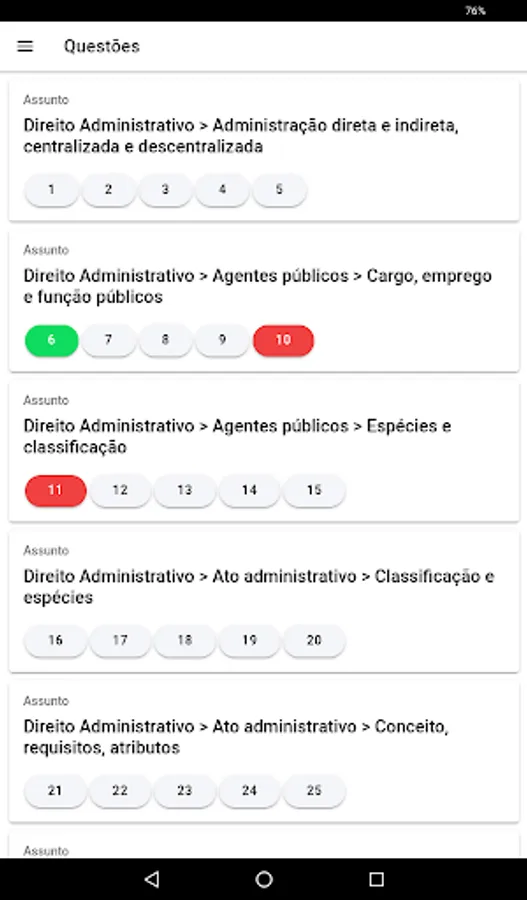 See the feedback on the spot and evaluate its performance on the main screen, where the number of questions answered and the success rate appear. On the topic screen, quickly see which questions have already been answered, and which have been answered correctly or not.