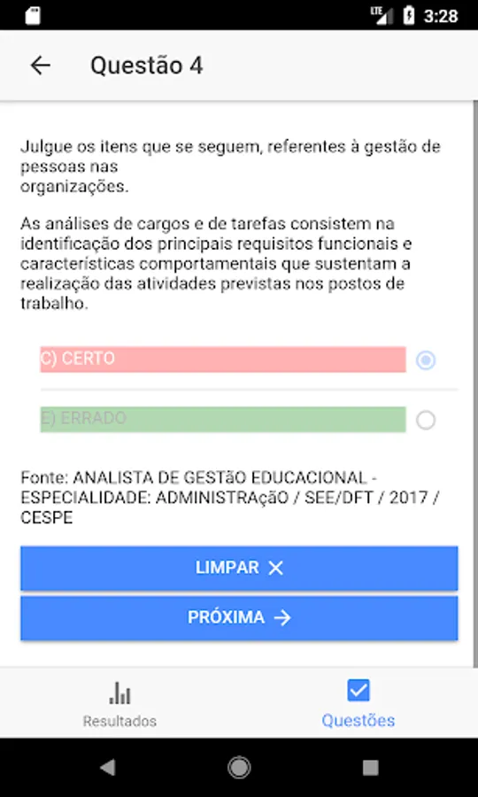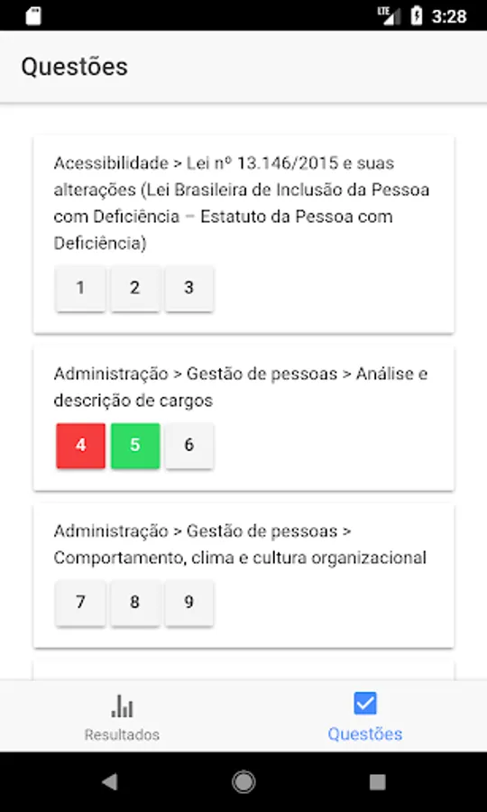 See the feedback template on the hour and evaluate your performance on the main screen, which shows the number of questions answered and the hit rate. On the topic screen, quickly see what questions you have answered, and which ones have been answered correctly or not.