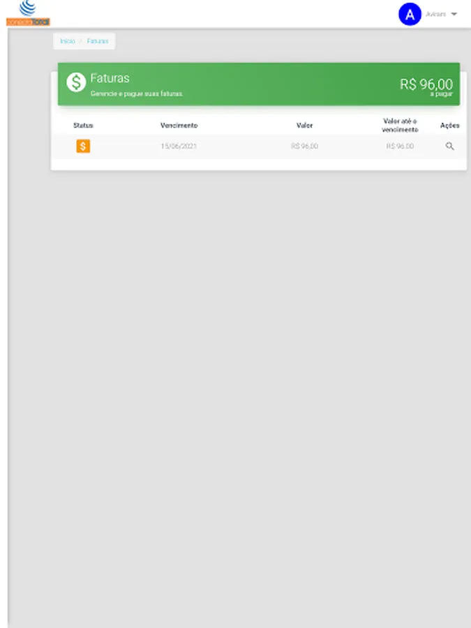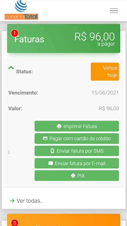 ConectaTotal subscriber center for payment of invoices, sending by email, cards and pix.