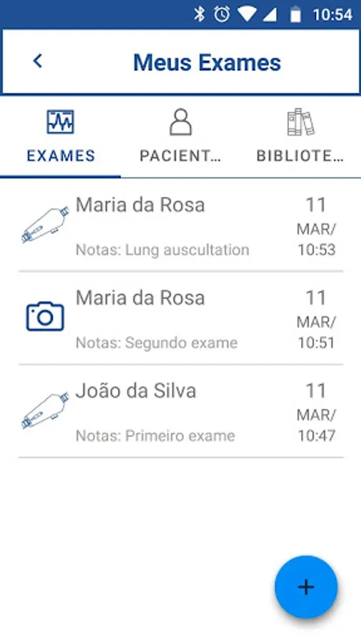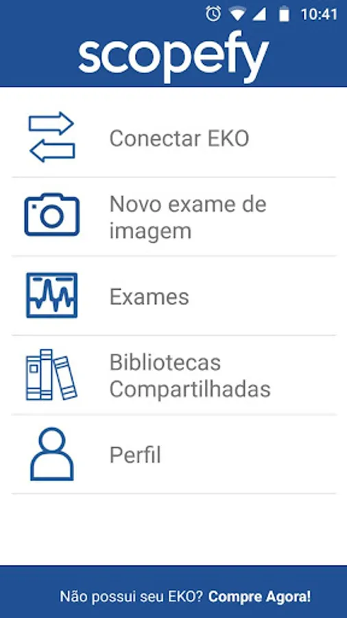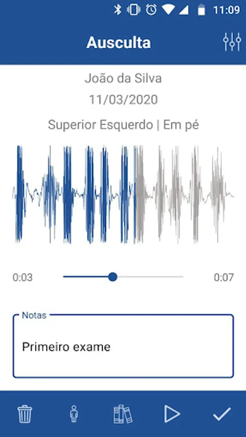 Scopefy allows the doctor or medical student to record different exams, such as auscultations, ophthalmology and otoscopy for later use in teaching based on real exams. It is possible to record the auscultations through the Eko device, via Bluetooth, and graphically view the auscultation together with the audio. The app also allows you to record exams in image and video format, integrated with specialized devices.