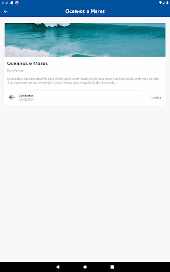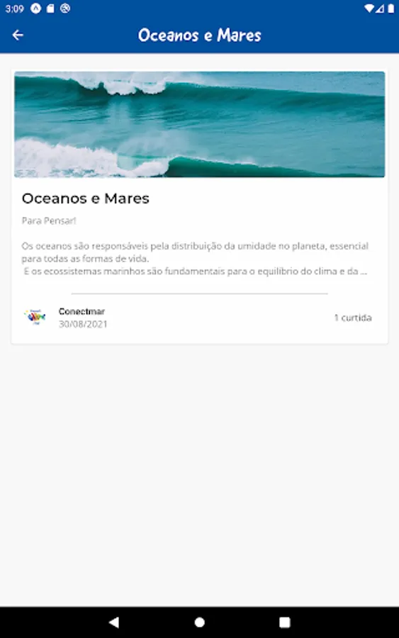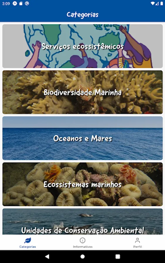 Conectmar is an environmental education application designed to bring knowledge to children and teenagers.