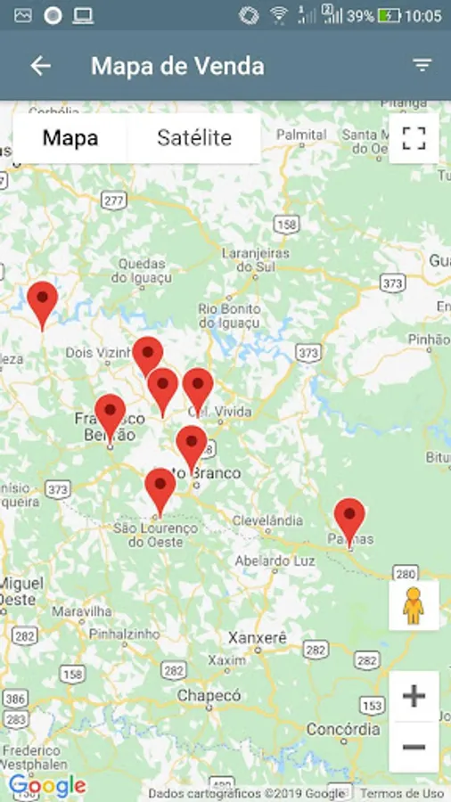 Sales Map that indicates the places where the sales were made, allowing a visualization of the regions that you are attending.
