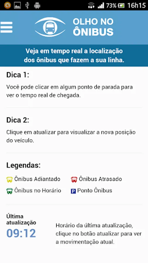 Eye On The Bus was developed in order to increase operational transparency and social control of the metropolitan public transport. He is, above all, a democratic tool of accountability, in real time, about the service run by concessionaires of the Metropolitan Collective Transport Network (RMTC).