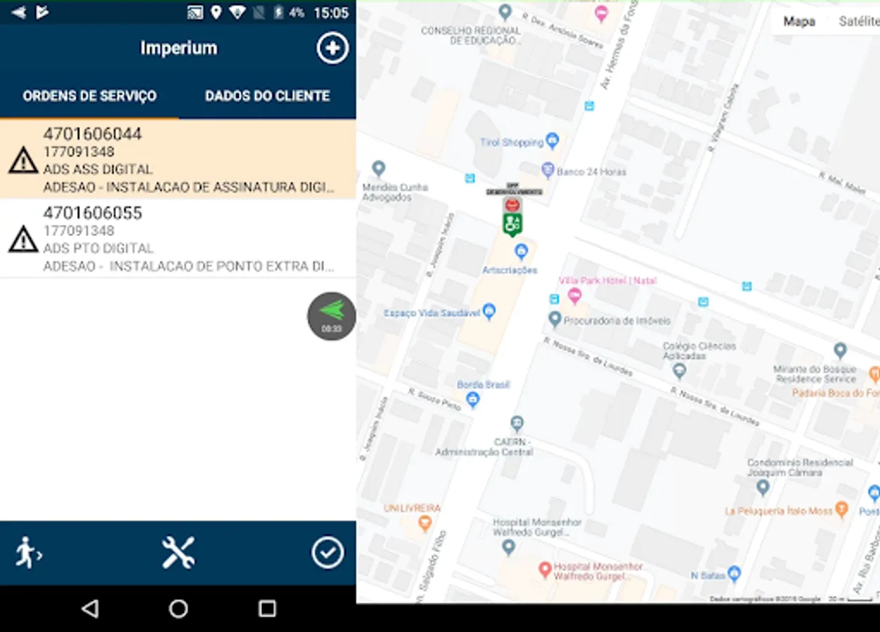 This App also collects location information in the background and sends it to the service provider, in order to optimize the routing of services based on the location of its technicians and customers, thus providing greater agility in the execution of services and greater savings in travel costs.