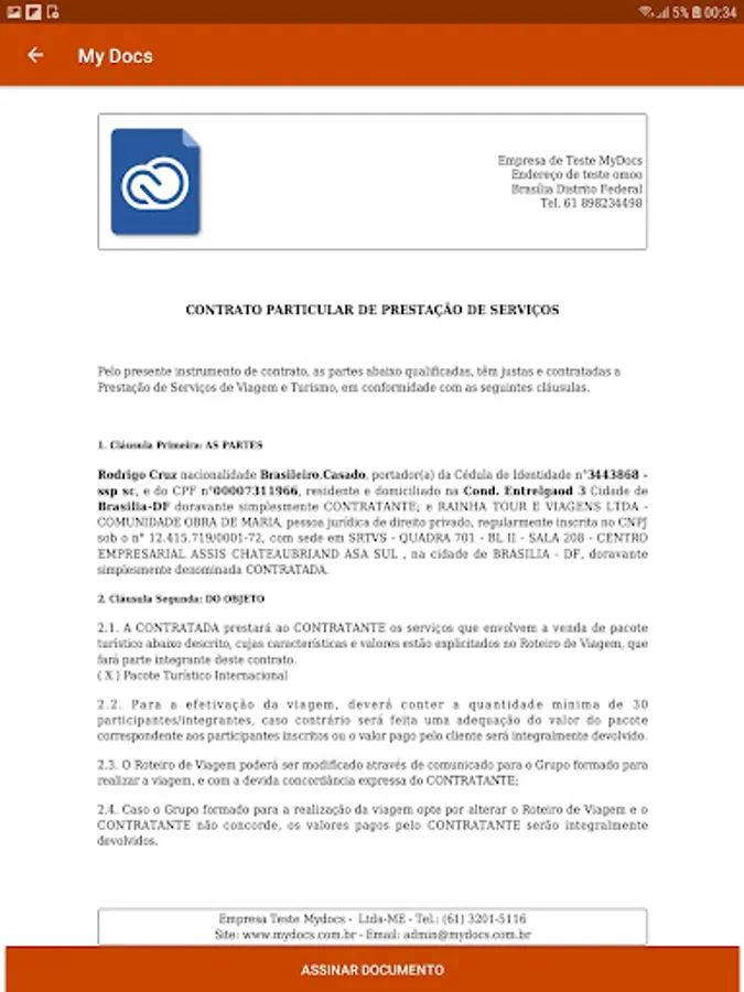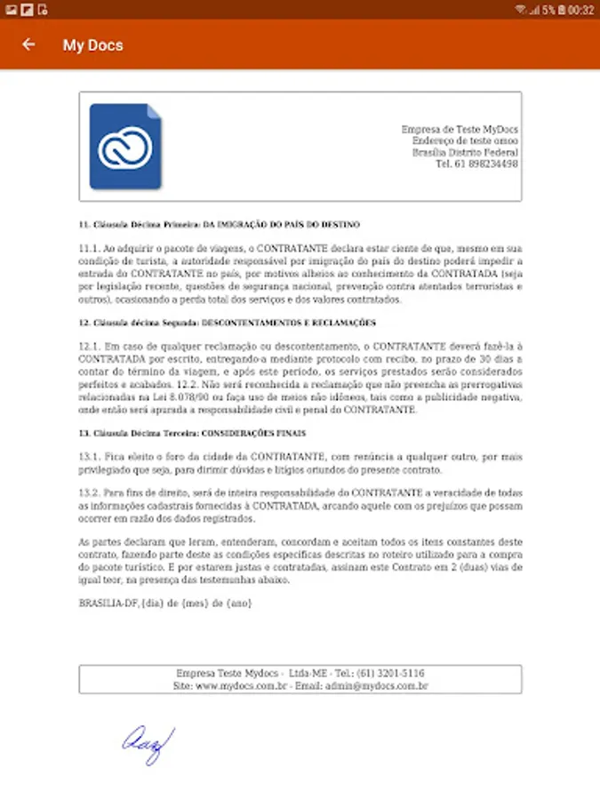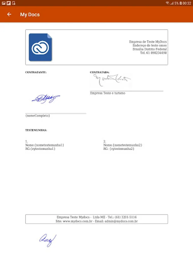 This application is used to sign with an electronic signature on tablets the documents generated in the My Docs Homologation platform