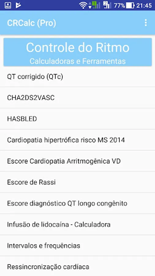 Cardiology has several auxiliary scores at diagnosis and decision-making. This is especially true in the field of ritmologia. The CRCalc (Pro) contains useful tools in everyday life of those involved with heart rhythm disorders.