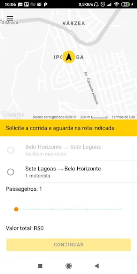 Make your registration and enter your origin and destination. You can request the race at several points registered on the map, and wait at the closest one.