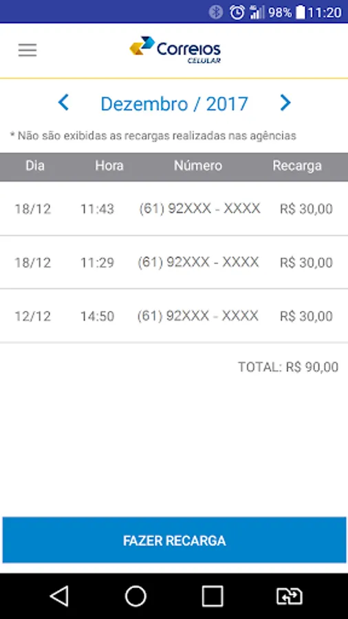 - History of recharges made online (application, site of the Mobile Post and by SMS).