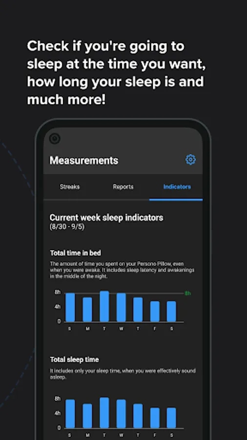 Everyone's sleep is different. That's why the Persono App is customizable, which allows everyone to set their own goals for bedtime, wake up time and the amount of hours they want to sleep.