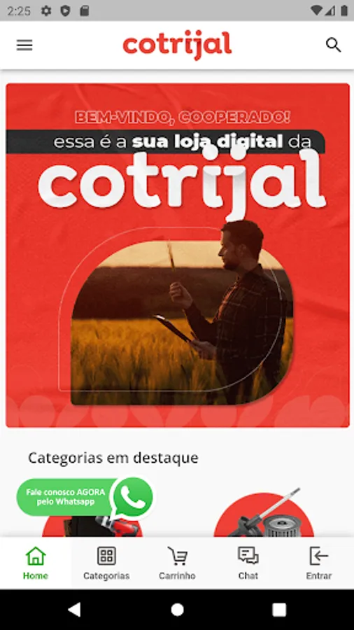 The application makes it easy for Cotrijal members to consult a digital catalog of products, their prices and quantity available in stock. With it, the cooperative members will be able to insert products in the shopping cart and close the order.