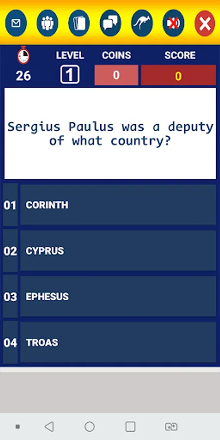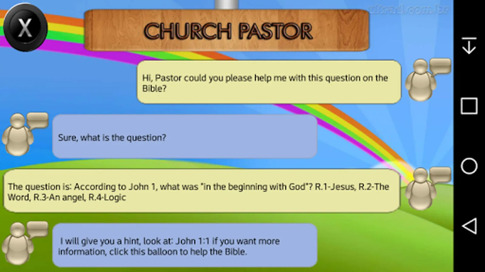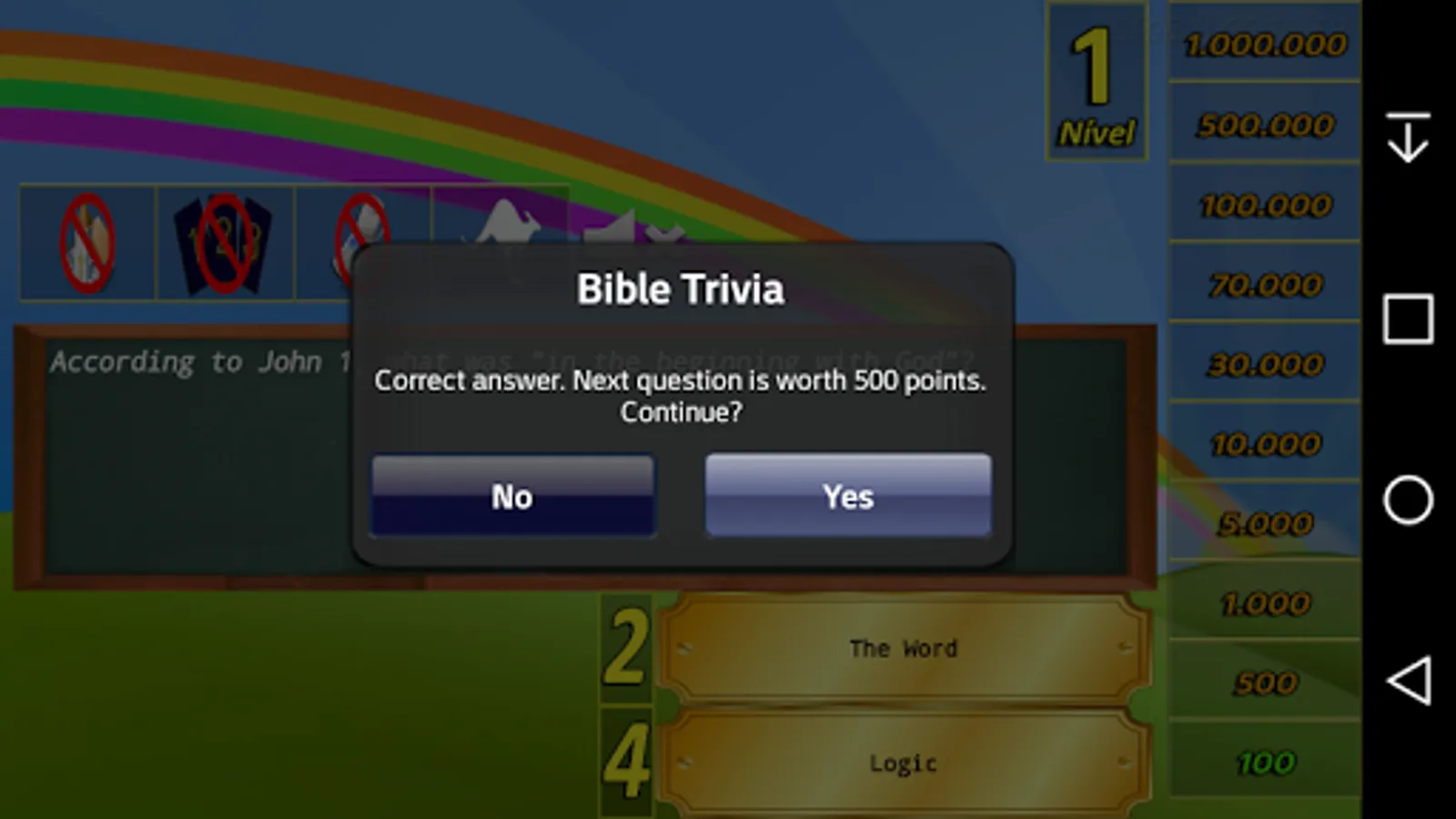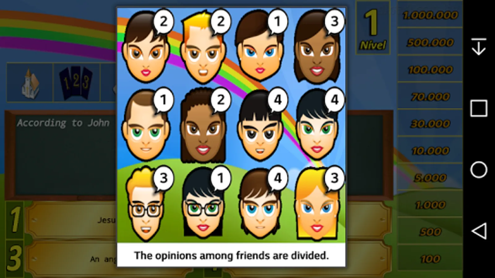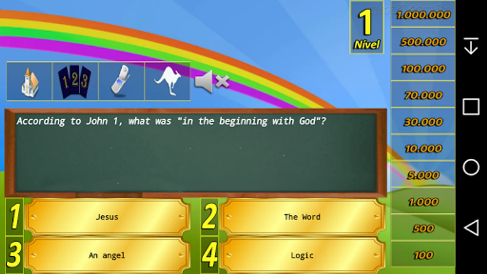 It's a Biblical game of questions and answers that grants the maximum award of 1,000,000 from coins divided into 4 levels of difficulty. In total there are 24 questions divided into 6 questions per level.