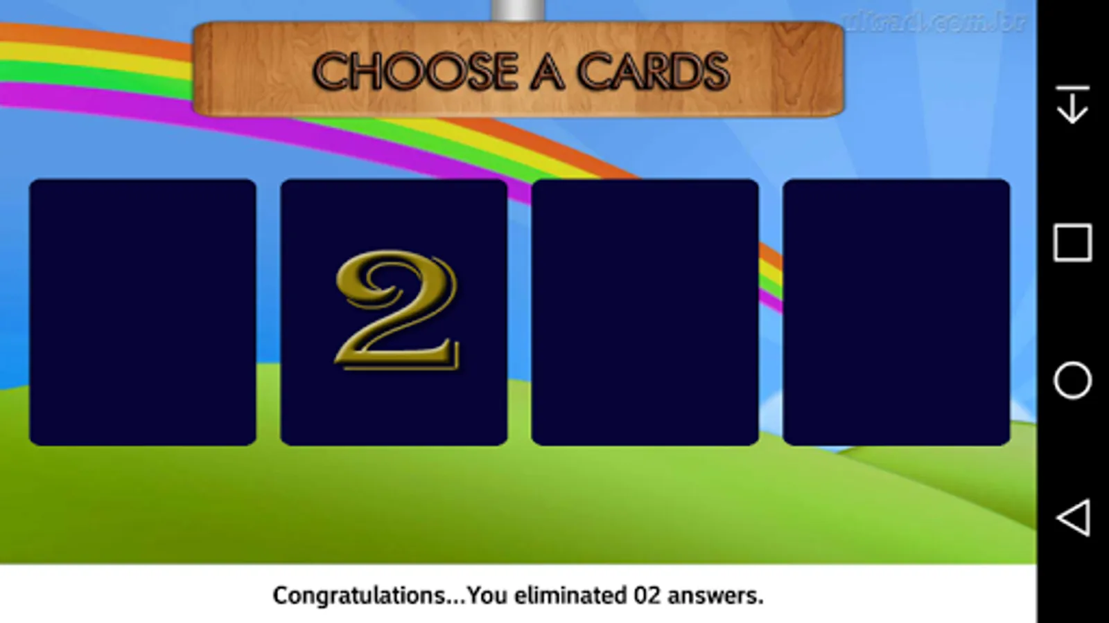 2-“Cards” Button-This option has 4 numbers from 0 to 3. Choosing a button chooses how many anwers to eliminate according to the number on the button.