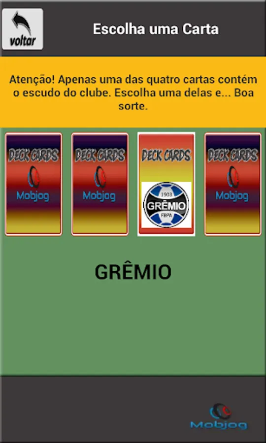 3 - Help the cards in this case has the luck of the player to find out which card is the team's shield. You can choose only one card four. More chances are good 3X1, ie are three chances to hit for error.
