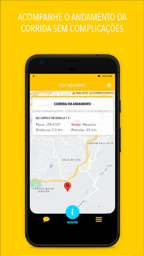 Our application allows you to call one of our motorcycle taxis and follow the vehicle's movement on the map, being notified when it is at your door.