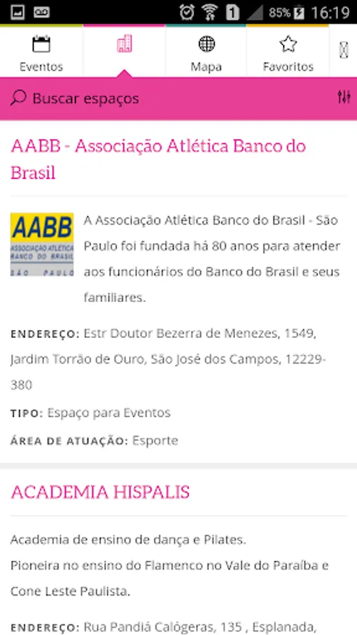 Look for cultural spaces included in the platform, accessing the combined search fields that help the accuracy of your search. Sign the spaces where it develops its artistic and cultural activities.