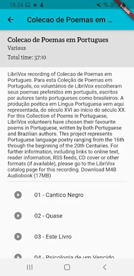 Selection of audiobooks - source librivox. Application to verify the visual identity in the application store.