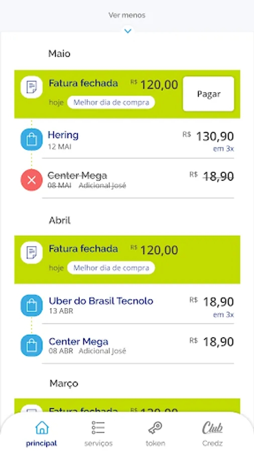 Focus your bill payments and top-ups on SuperApp Credz. Top up prepaid landline and mobile, Uber, Spotify and games. Access and share your payment receipts. You can still pay in cash or in installments with your Credz Visa card.