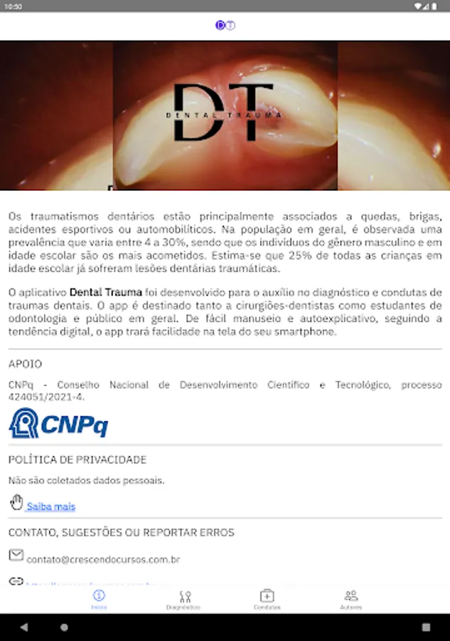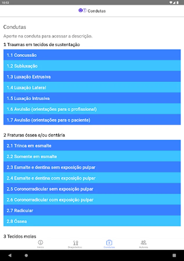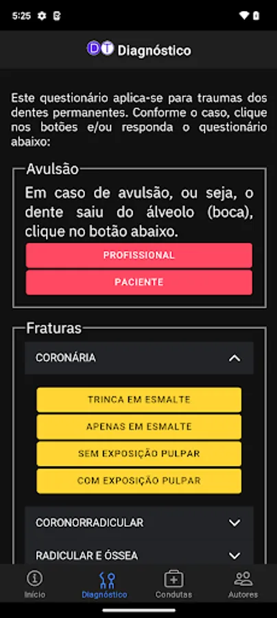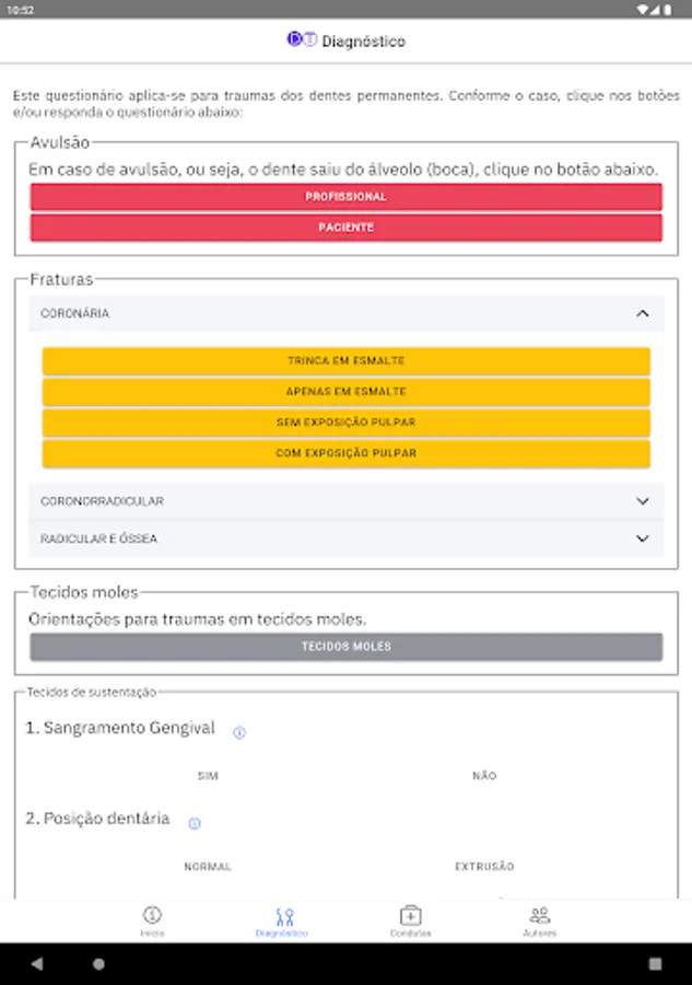 The Dental Trauma application is an auxiliary tool and does not replace the evaluation of a qualified professional (dentist). Users of this app should seek dental care before making any medical decisions.