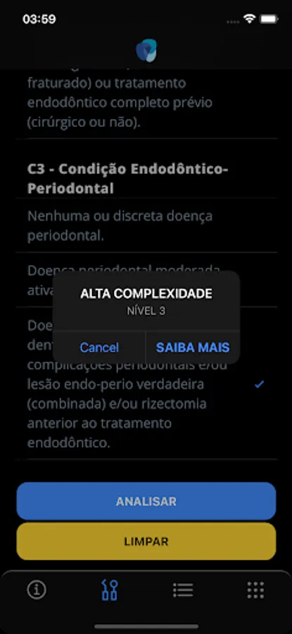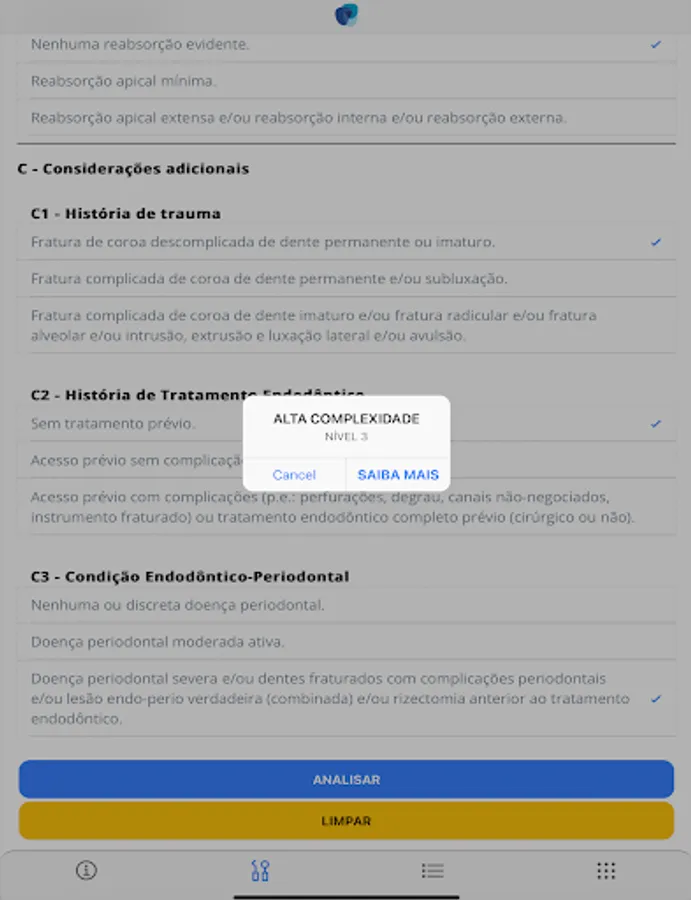 The app helps the professional to survey and recognize several variables, difficulties, factors and limitations that directly influence treatment planning, as well as help in deciding how and by whom this endodontic treatment should be conducted.
