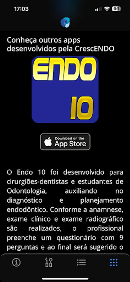 The app was developed by the Brazilian Society of Endodontics (SBEndo) in partnership with CrescENDO Advanced Trainings. The objective is to make the selection of clinical cases more efficient and consistent in the endodontic practice of general practitioners and specialists.