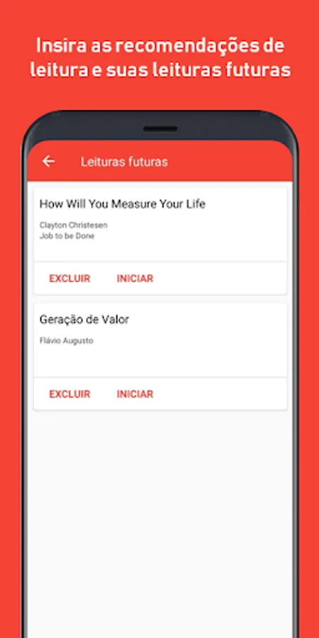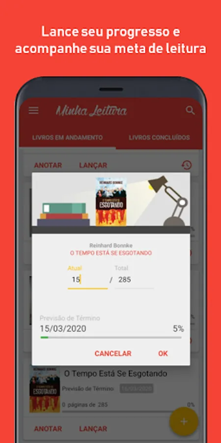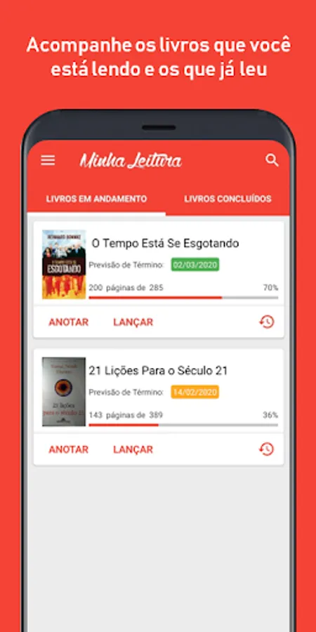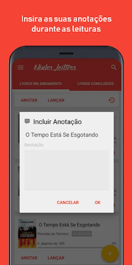 The application 'Minha Leitura' (My Reading) is designed to manage and encouraging reading books.