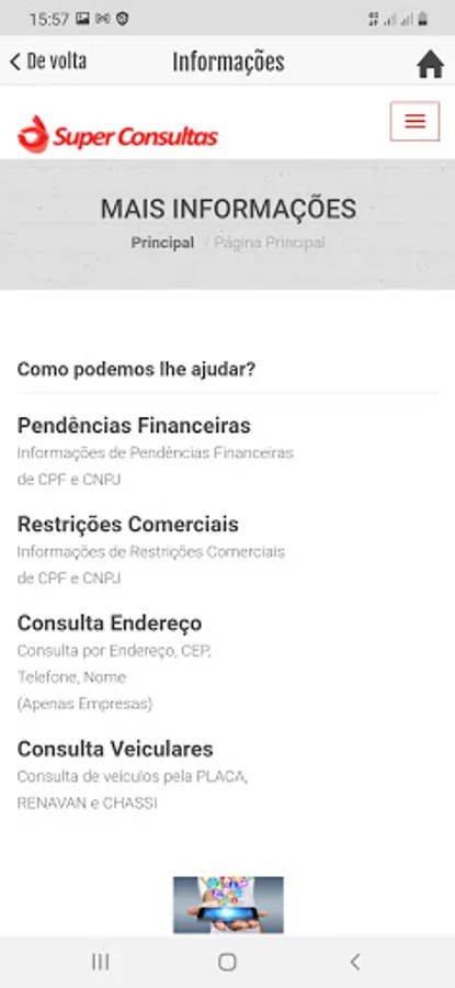 Super Consultas is an application that allows you to consult your cpf, cnpj or even a used vehicle before purchasing to check if it has already lost completely or if it is an auction car, it also provides complete vehicle information.