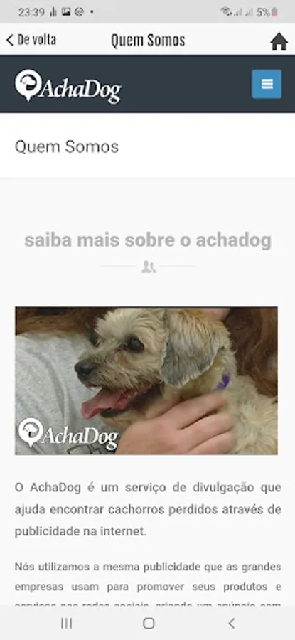 We use the same advertising that big companies use to promote their products and services on social media, creating an ad with photos and information of your dog to be published on our website and app, and we also provide more complete plans for dissemination on social media. and google ads. It is estimated that almost 83% of social media users access digital media every day, with this, we were able to reach thousands of people who are close to the place where he was lost, being a faster and more agile way to find your dog.