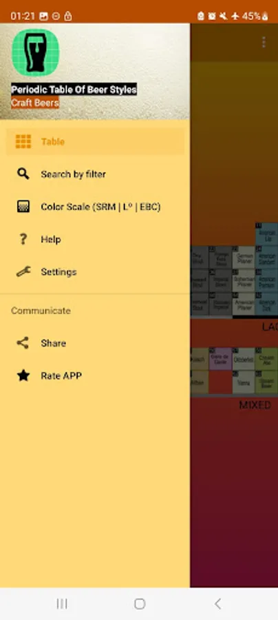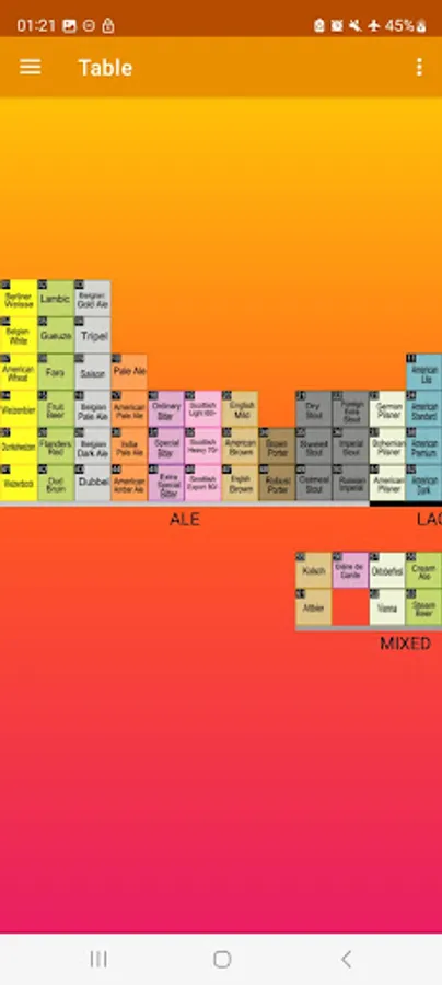 The Periodic Table of Beer Styles is a free application for the consultation of various characteristics of each beer style in two ways: table and vertical viewing.