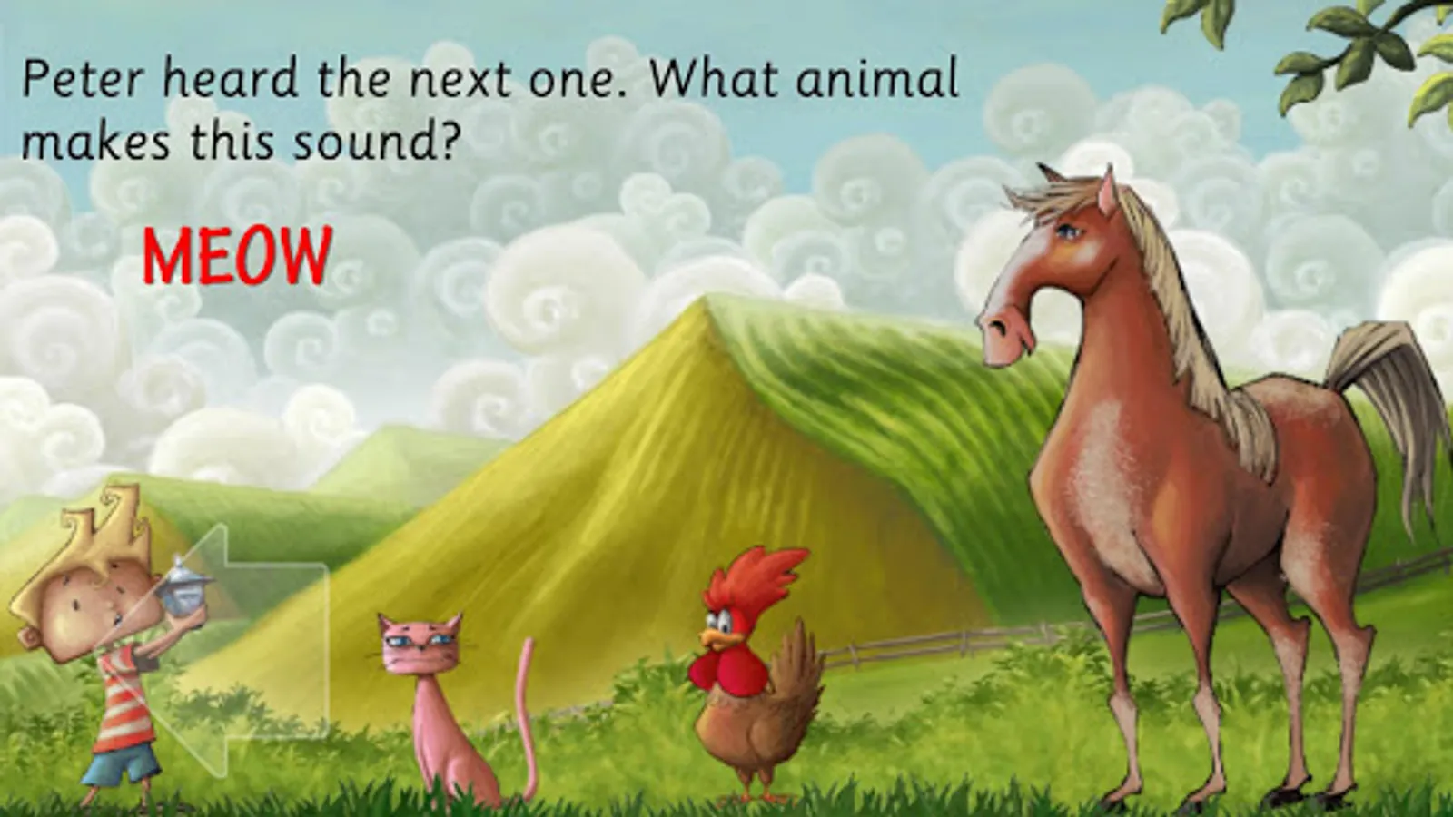 The Sound of Animals works as a game in which the player must interact with animals, The Sound of Animals is a painted fairytale! It's a form of literature attractive to children. It always uses good humor, imagination and children’s enjoyment for games in order to hold the little reader and tell the story in an enjoyable and playful way.