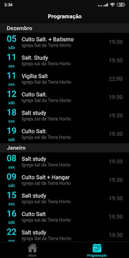Stay on top of everything that happens at Culto Salt., A youth service organized by the Sal da Terra Horto Church in Pouso Alegre / MG.