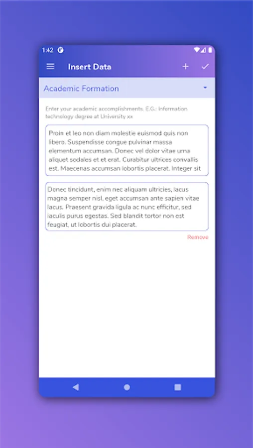 The Curriculum Manager is an application that facilitates the creation of your resume, effectively and intuitively you enter your information and it generates your resume. It prepares in a quick and practical way, a resume that can be generated in PDF and send by e-mail by the app. All these features gathered into a useful and productive application.
