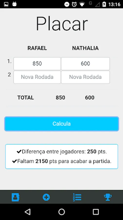 It also has statistics for all your saved games and a ranking of players or winning double.