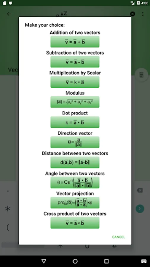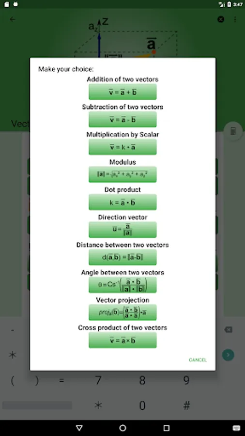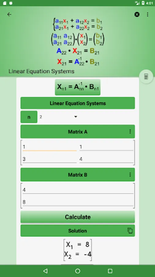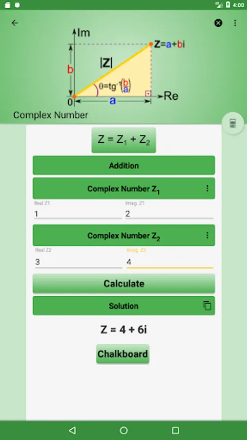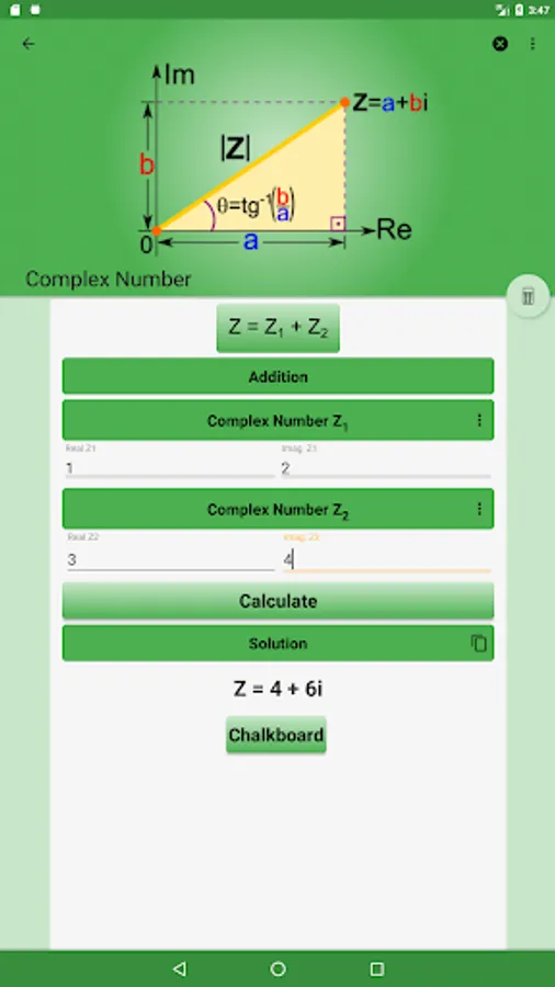 Sensational, easy, intuitive, practical and very useful APP for calculating math formulas. Calculating 2nd degree equation, arithmetic progression, geometric progression, complex numbers, vectors and matrices have never been easier.
