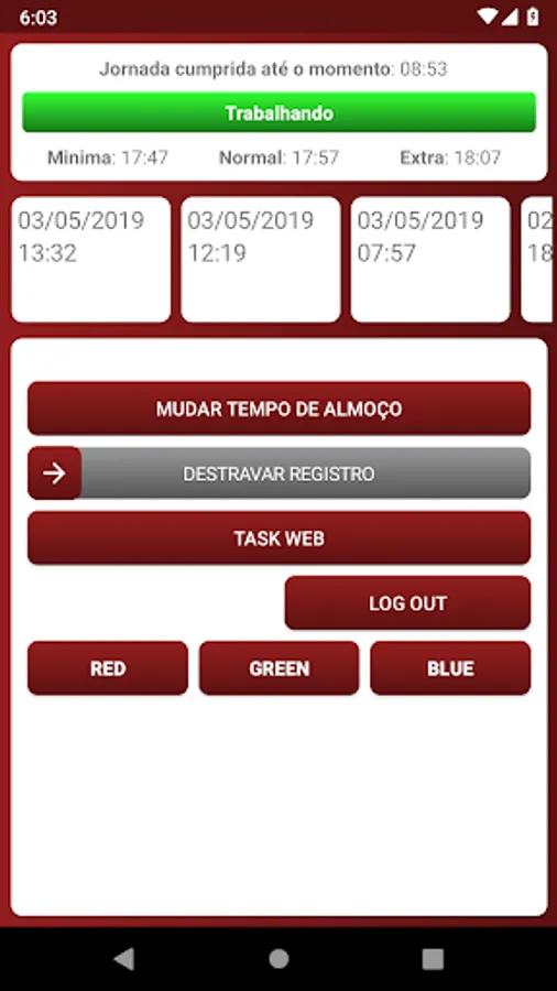 Interface to facilitate the registration in the PontoFopag system and to monitor the daily time load.
