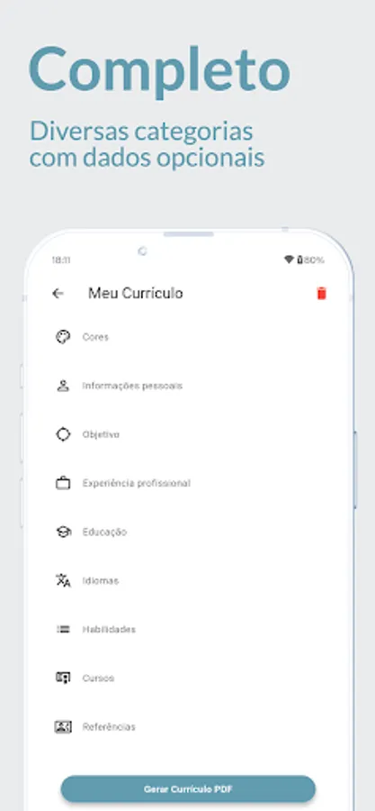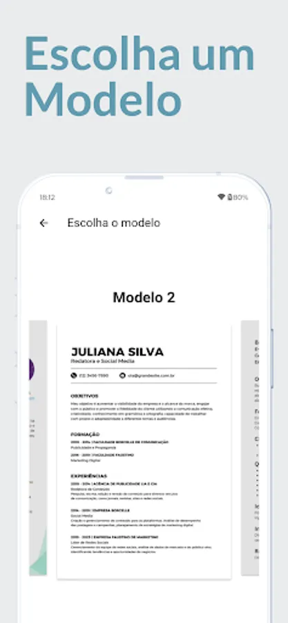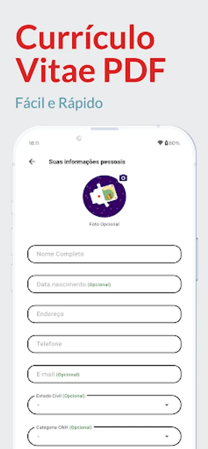 CV Vitae PDF is an intuitive and practical application for generating professional CVs in PDF format. With a simple interface, you can fill in your details, add experiences, skills and generate a resume ready to be shared via email, WhatsApp or other platforms.