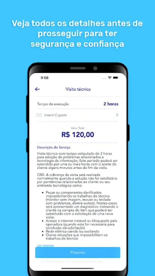 When choosing the service you want, you will already have the cost of the requested service available on the screen.