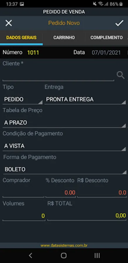 Application for users of the BigDATA system, where sales orders made by the App will be sent to the rear system.