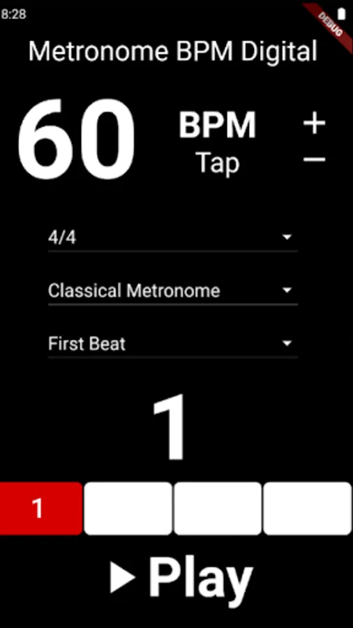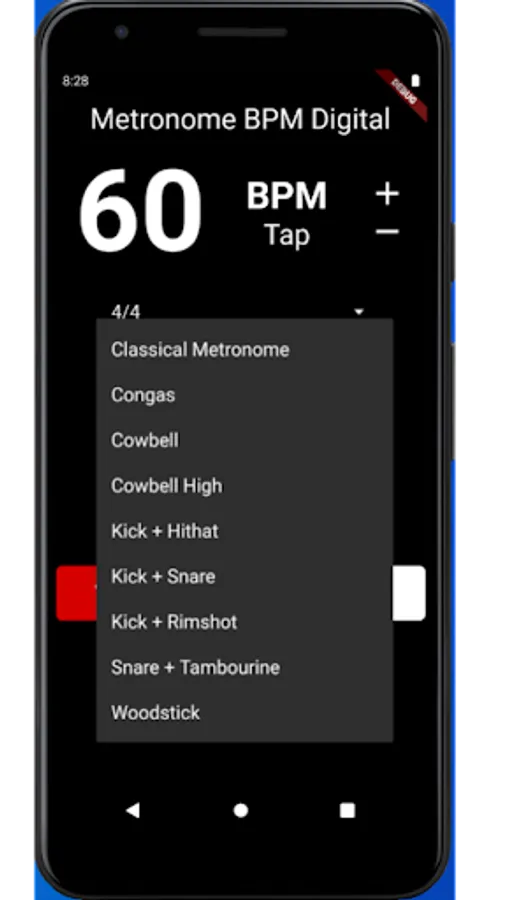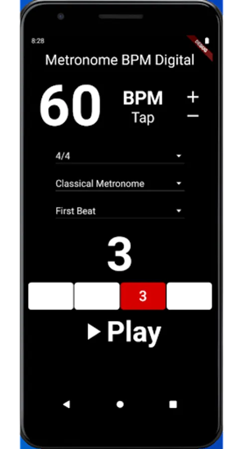 The BPM Digital Metronome lets you play different types of beats in measures 2/4, 3/4, 4/4 or any other measure.