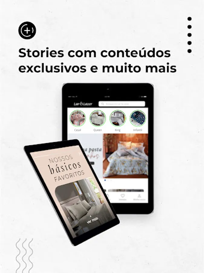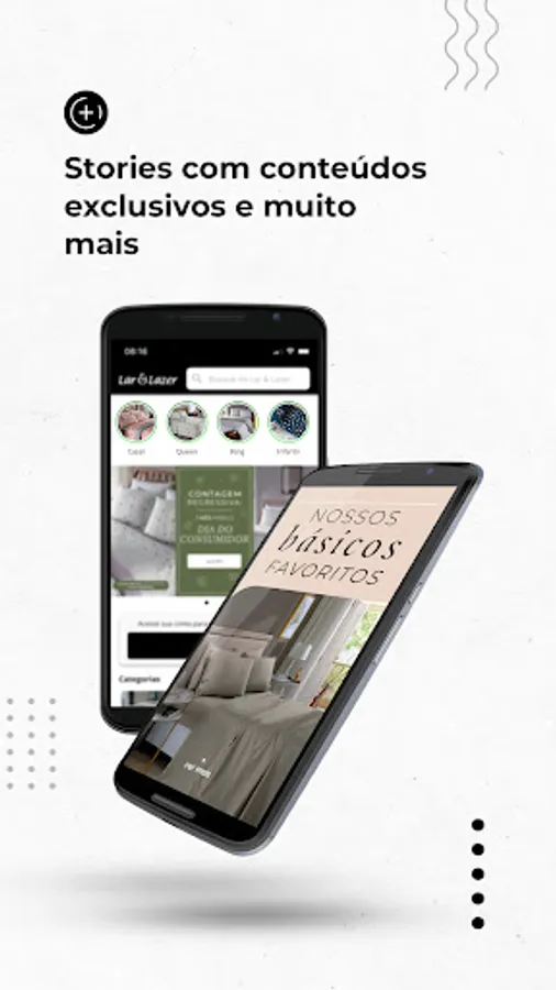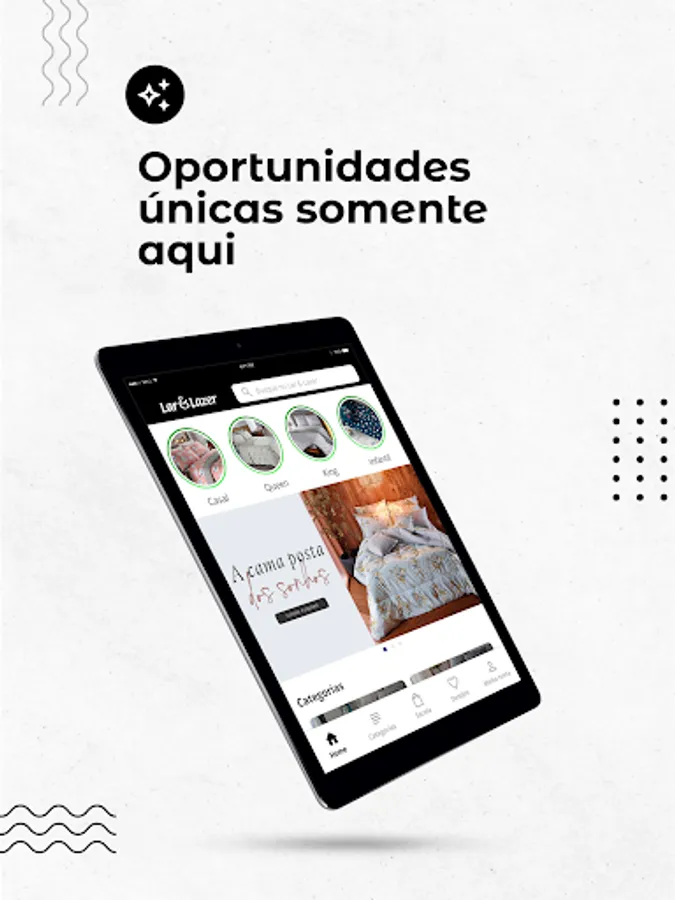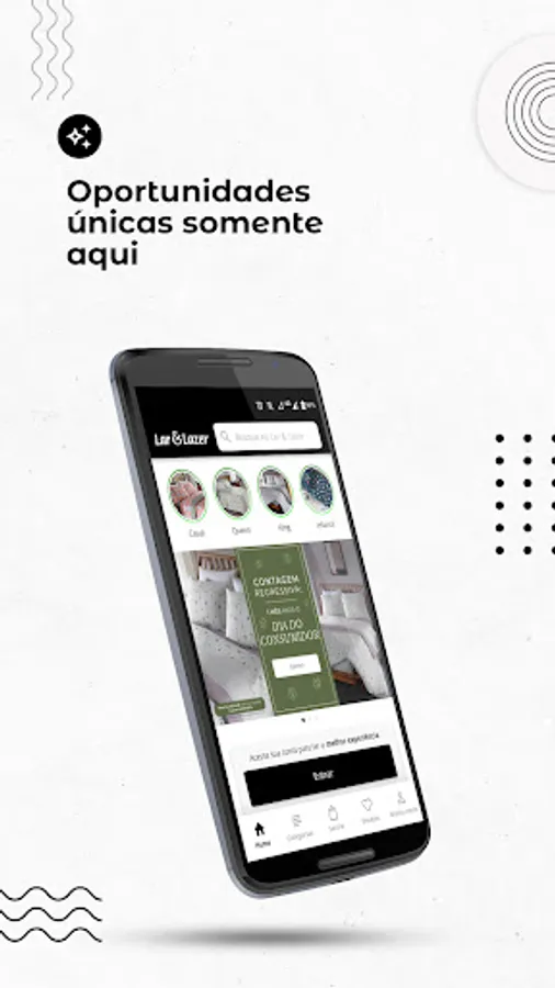 In the App do Lar & Lazer, buying online is practical, fast and you can find everything you need for your home, in one click. With the Lar & Lazer app you can check out our releases, take advantage of offers and discounts first hand and have an exclusive curation with the beloved products for Bed, Table and Bath.