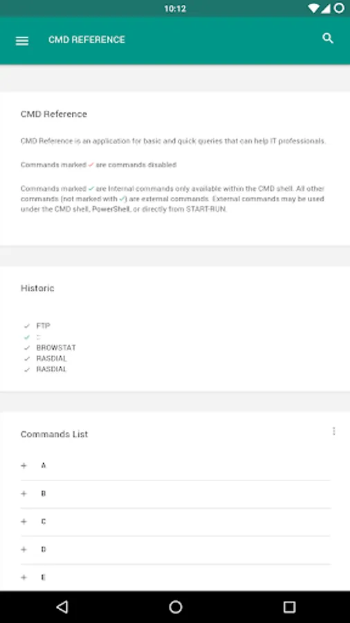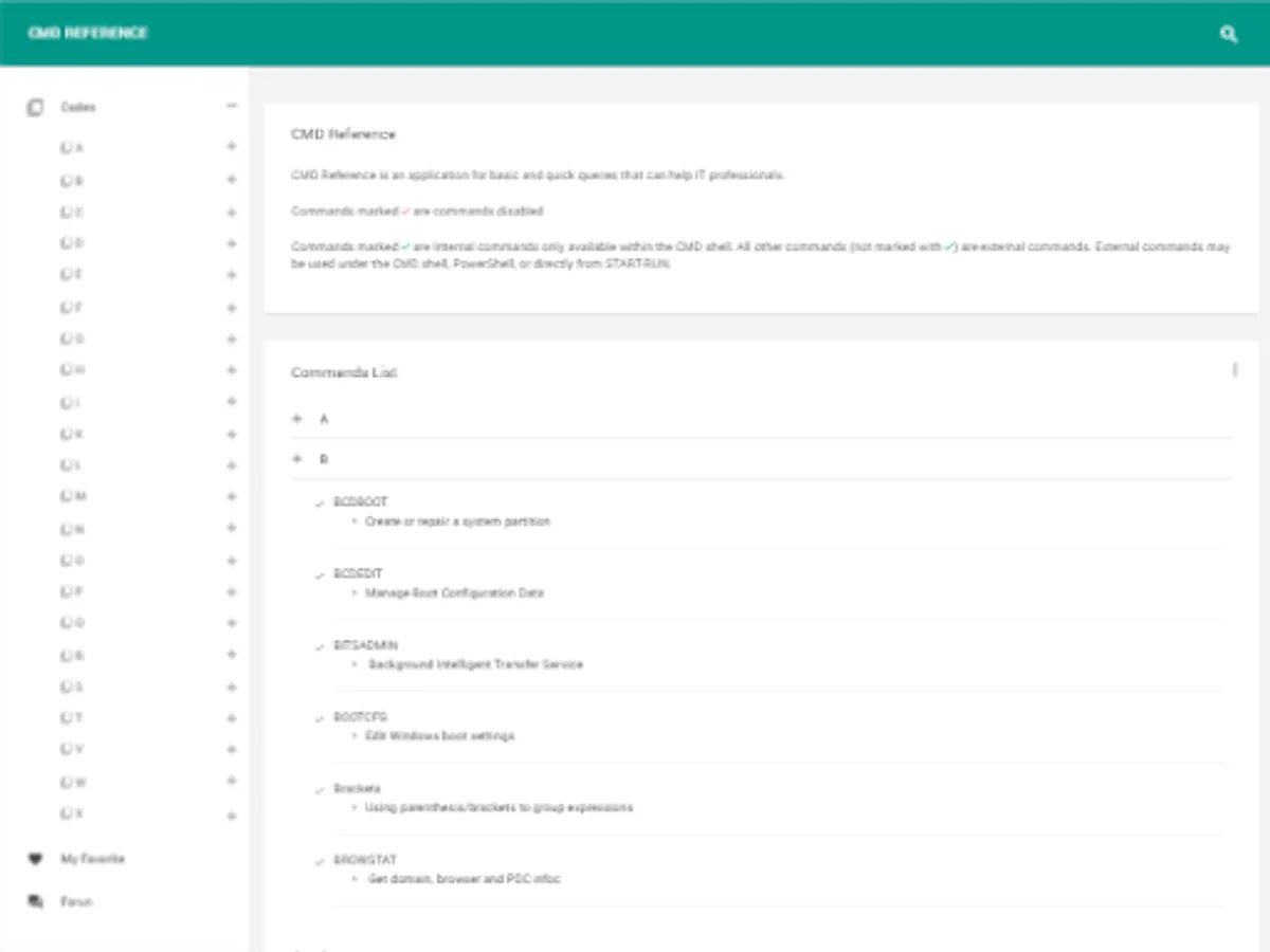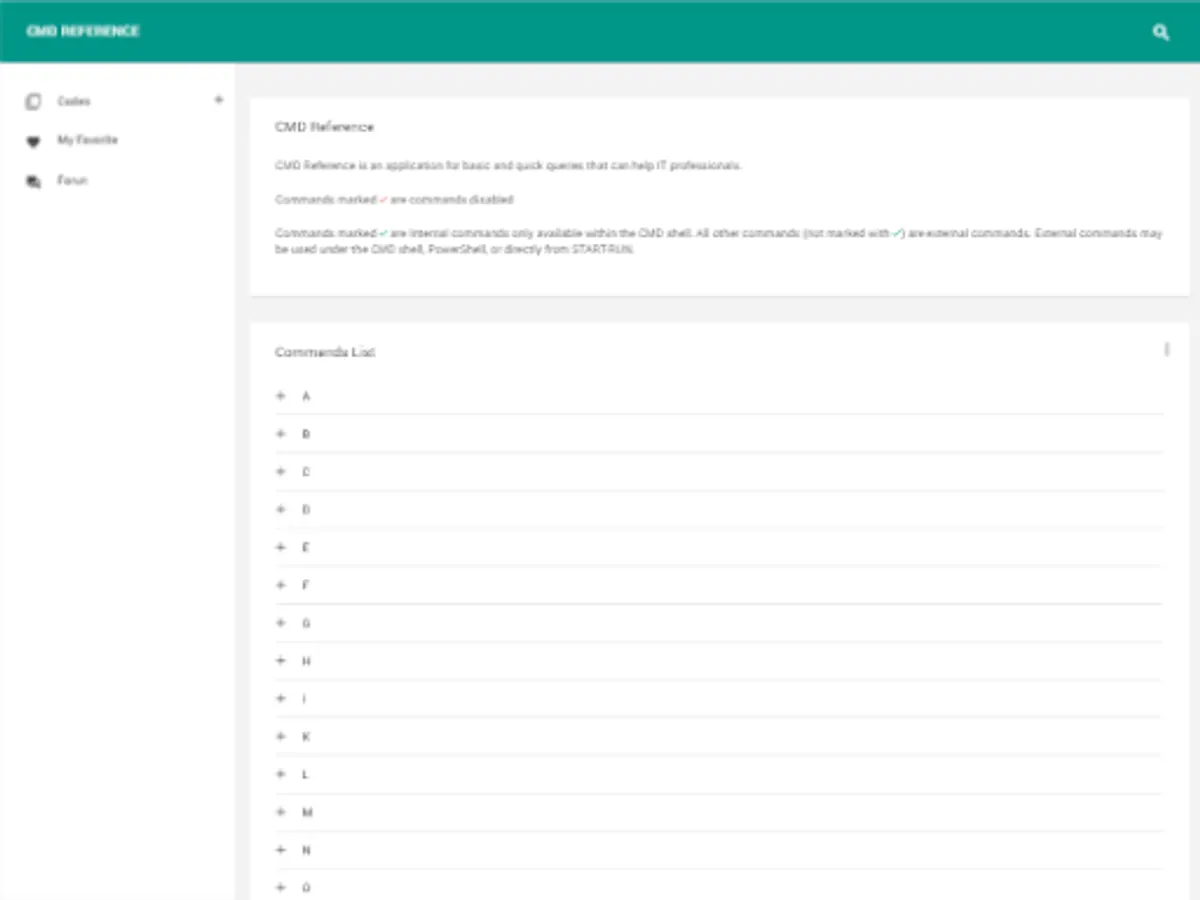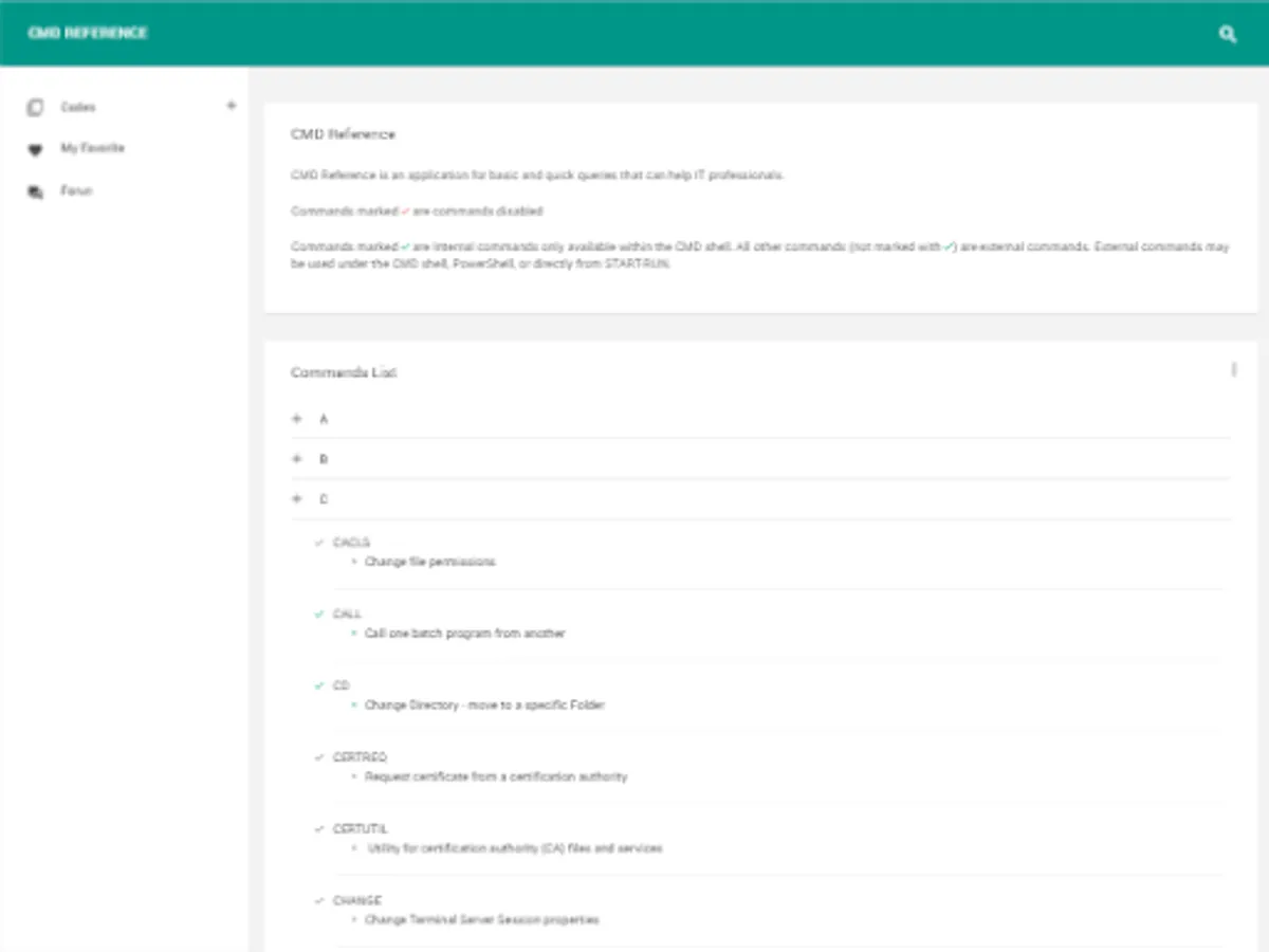 CMD Reference is an application for IT professionals and students, making them better in the knowledge of Windows CMD (MS-DOS).