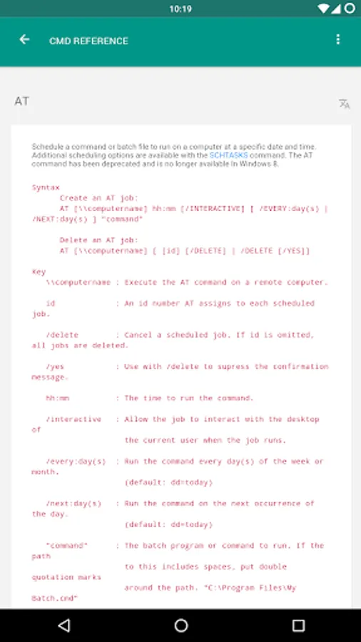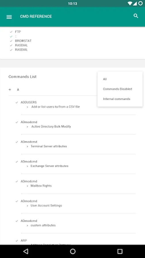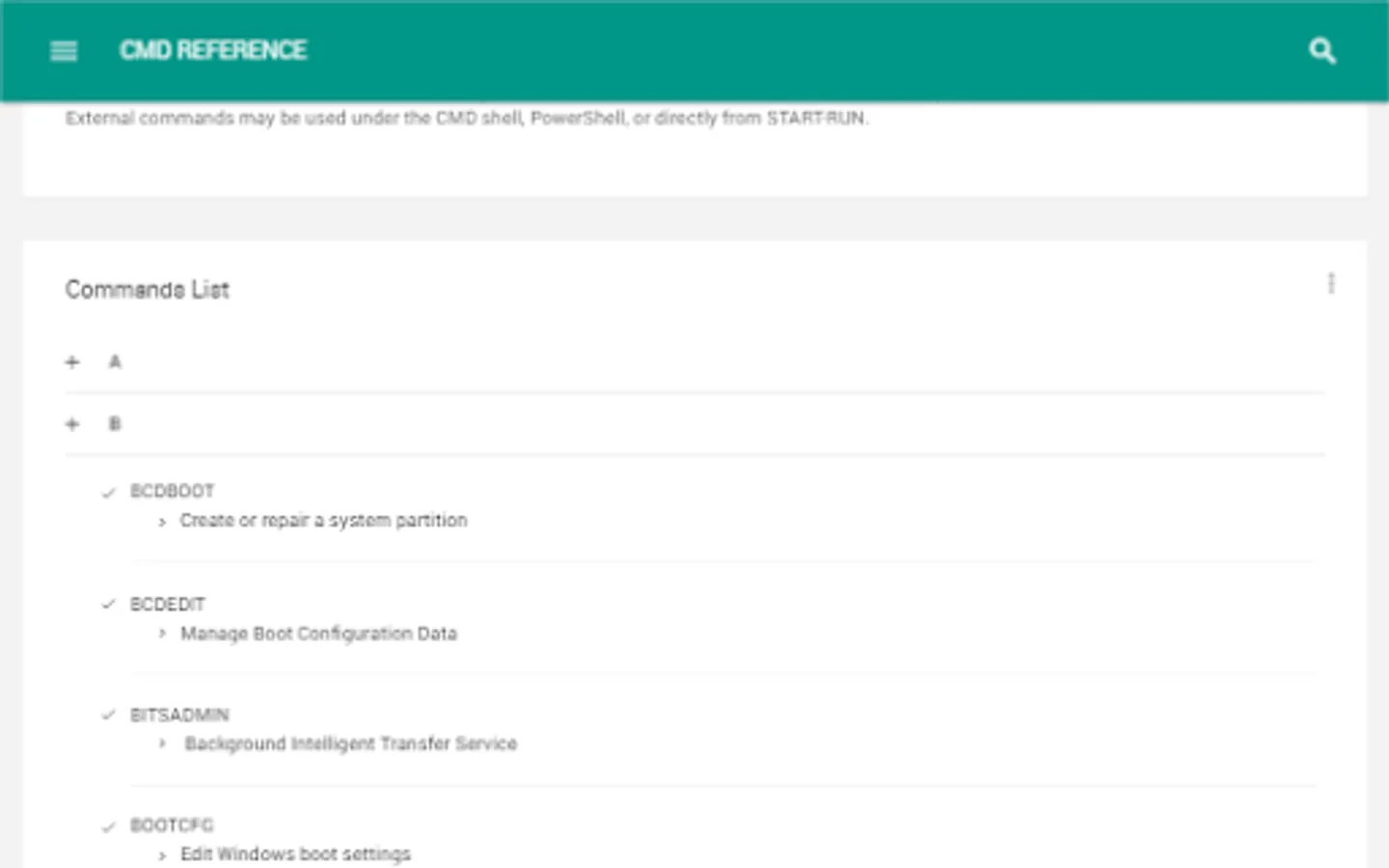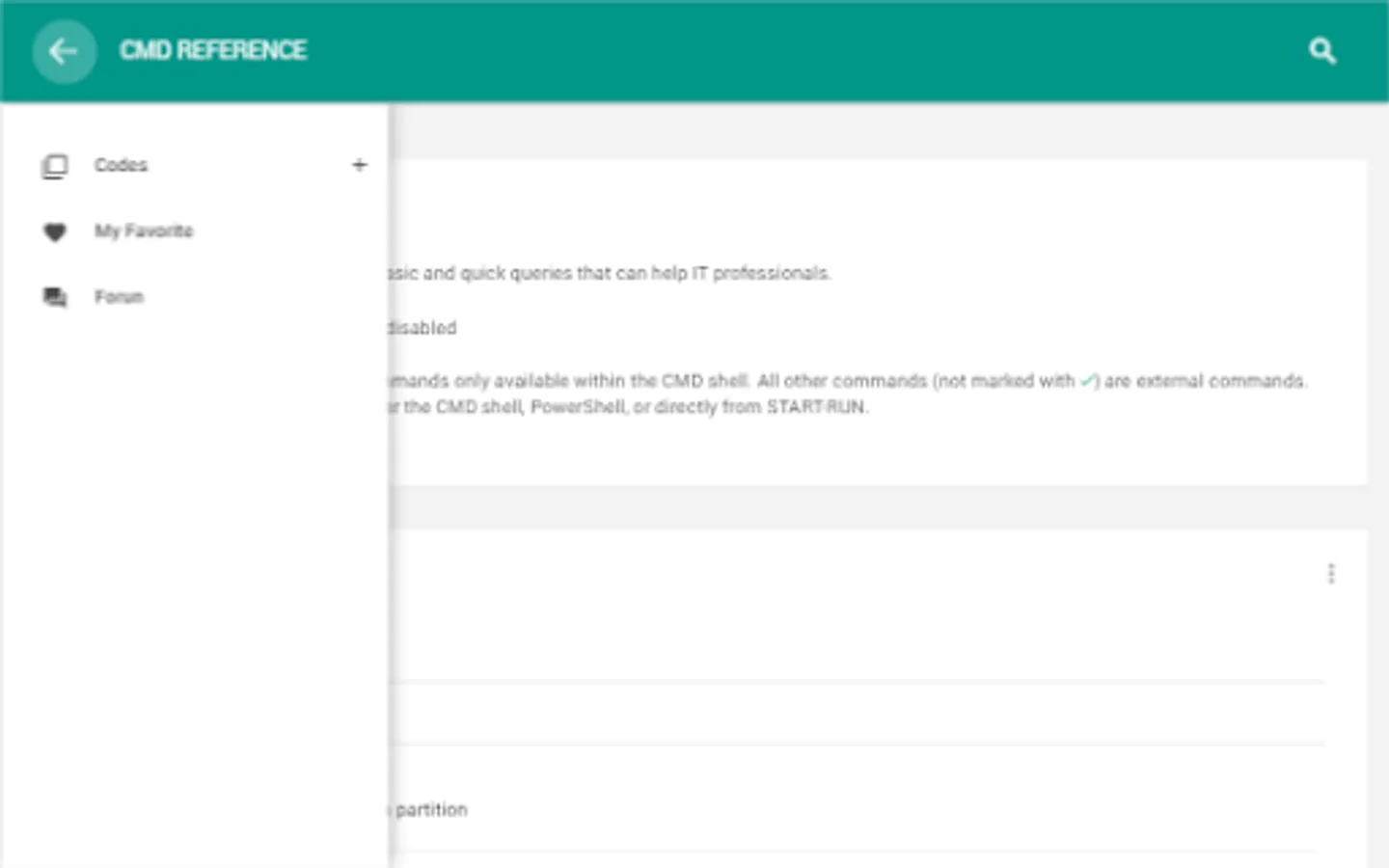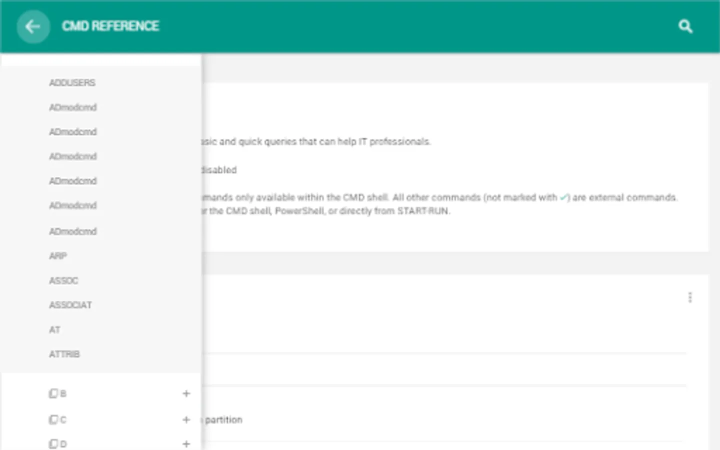 CMD Reference is an application for IT professionals and students, making them better in the knowledge of Windows CMD (MS-DOS).
