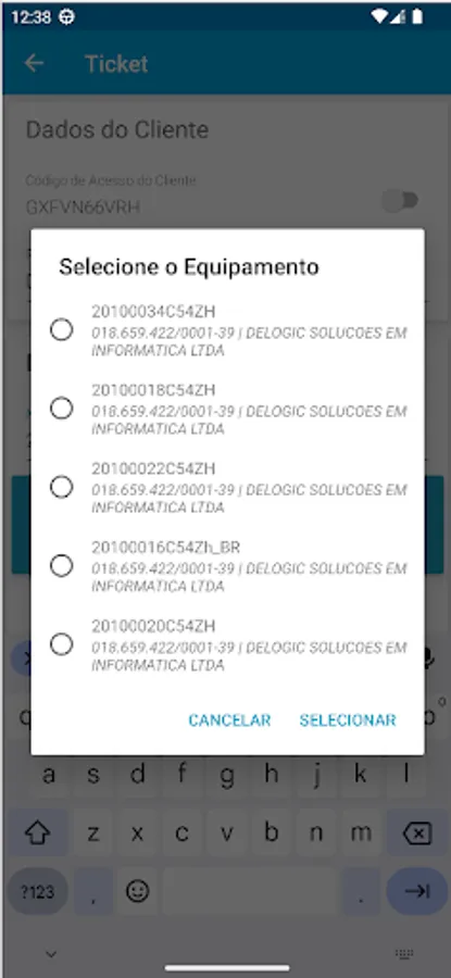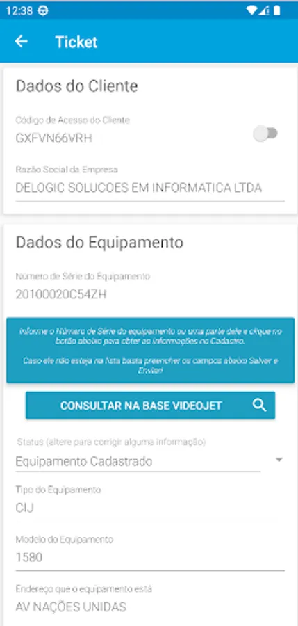 The application allows the user to open a Support Ticket with the Videojet Team. For this, it is necessary to have the customer access code at hand.
